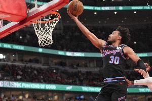 上半场比赛,公牛后卫特雷·琼斯发挥出色,进攻端两分球弹无虚发,各种反击和突破效果十分不错,次节5中5砍下11分带队咬住比分。